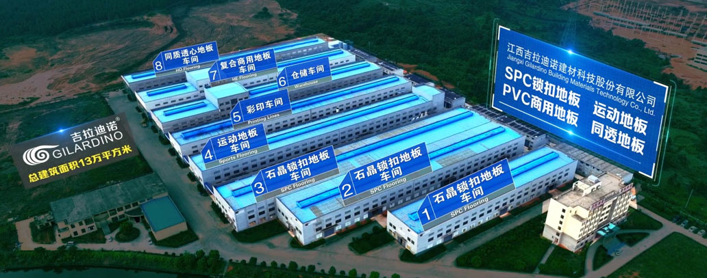 江西吉拉迪諾建材科技股份有限公司,占地面積近300畝,建筑面積13萬(wàn)多平方米,總投資5億元,擁有20余條生產(chǎn)線,員工近300人。現(xiàn)有SPC石晶地板生產(chǎn)線十條、德國(guó)豪邁開(kāi)槽線兩條、大型商用卷材生產(chǎn)線四條、水墨彩印生產(chǎn)線兩條、同透地板生產(chǎn)線兩條,超大型運(yùn)動(dòng)地板生產(chǎn)線一條、是彈性地板行業(yè)產(chǎn)能量大,硬件實(shí)力強(qiáng)的生產(chǎn)廠商之一。